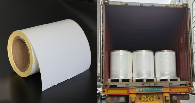 I dag laster vi full beholder selvklebende termisk syntetisk papir / frossen lim /60g gul glassine liner jumboruller etikettmaterialer for eksportmarkedet .