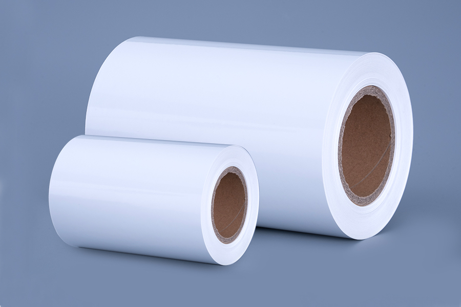 Glanset, ugjennomsiktig, koronabehandlet hvit polypropylen klistremerkefilm